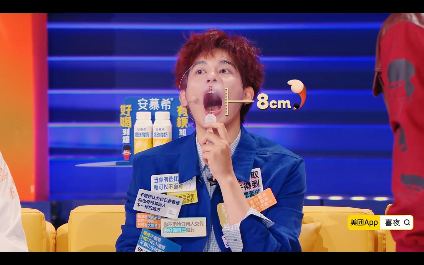 李诞张到了6cm,胡先煦张到了8cm,马东在旁边说胡先煦还是年轻,张若昀吐槽说,张嘴和年轻有啥关系啊?虽然没有关系,但确实是年轻,不然就和李诞一样,张一下意思意思就行了!