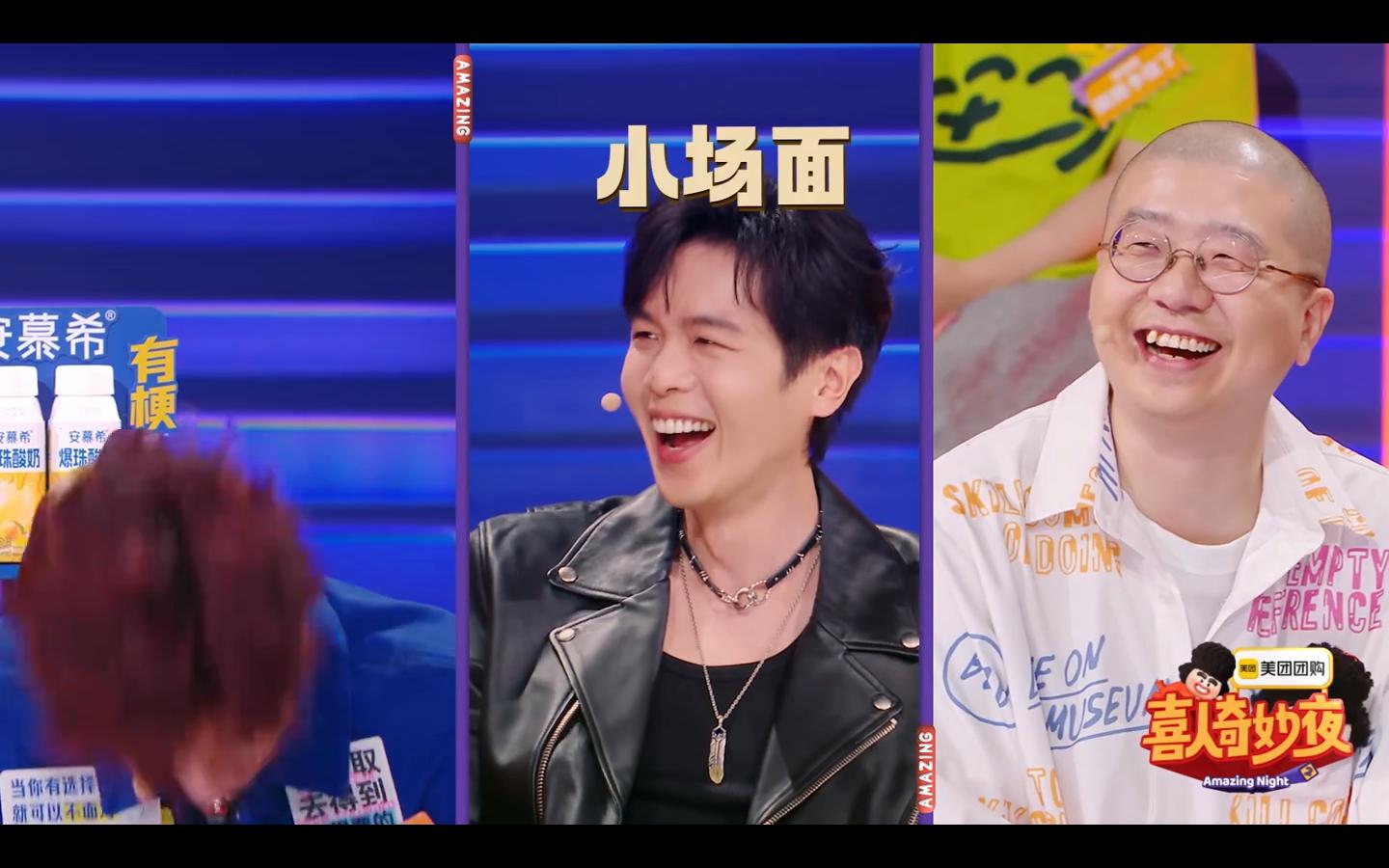 就像是那首歌的歌名“你不是真的快乐”!他很像是一个带着任务来看节目的演员,要怎么配合舞台上的选手们尴尬的喜剧呢?只能用夸张的嘴型来表现好笑,这是他做为演员唯一能做的!