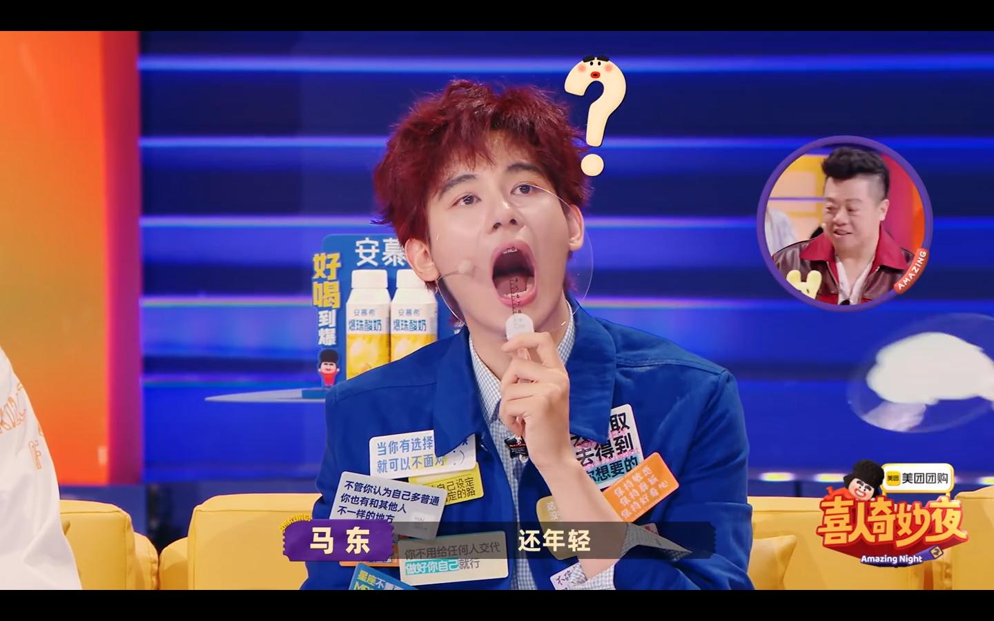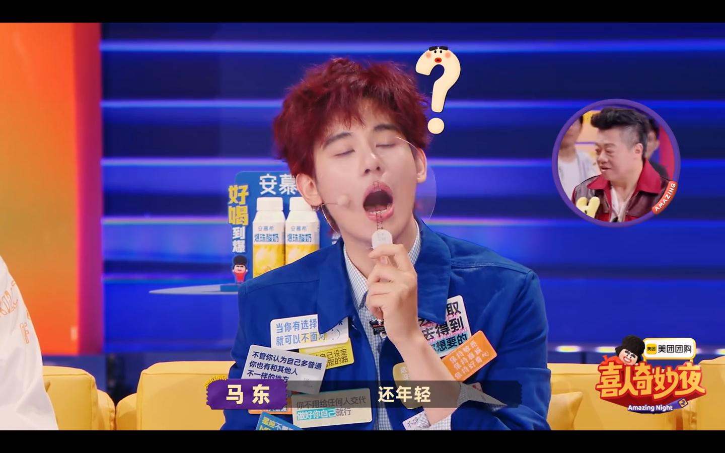 当然最后的“回旋镖”还是回到了张若昀这里,马东最后让他来个世界纪录,张若昀也是当仁不让,蓄力一张,开到最大尺度,节目组还特意做了一个他吃下全宇宙的表情包!到这里,这一趴总算是过去了!